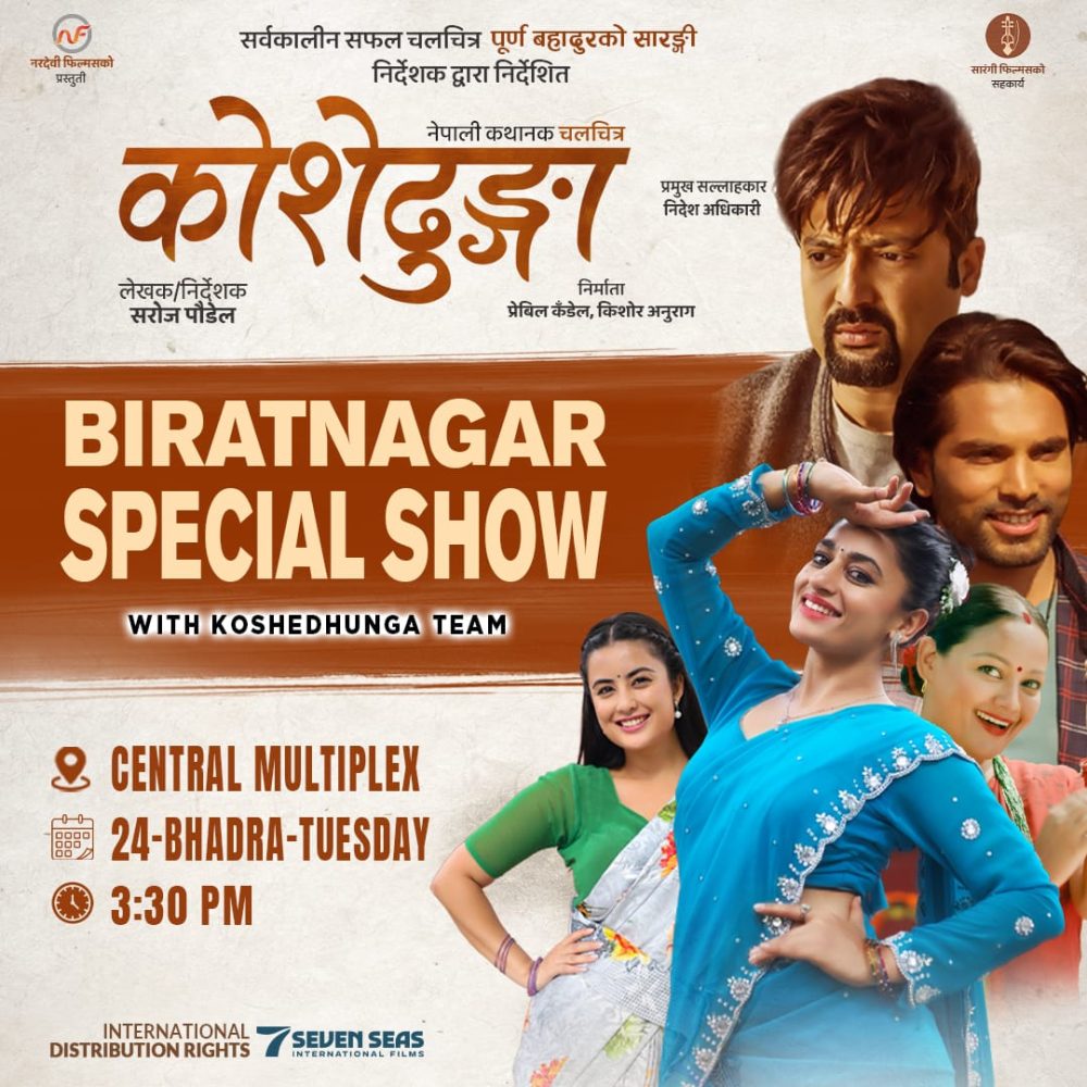 सर्वकालिक सफल सिनेमा ‘पूर्णबहादुरको सारंगी’ का निर्देशक सरोज पौडेलको निर्देशनमा निर्माण भएको सिनेमा ‘कोशेढुङ्गा’ को प्रदर्शनले सोमबारदेखि निरन्तरता पाएको छ । प्रदर्शनमा आएको दोस्रो सातासम्म आइपुग्दा कोशेढुङ्गा उच्च अकुपेन्सीसहित प्रदर्शन भइरहेको थियो ।