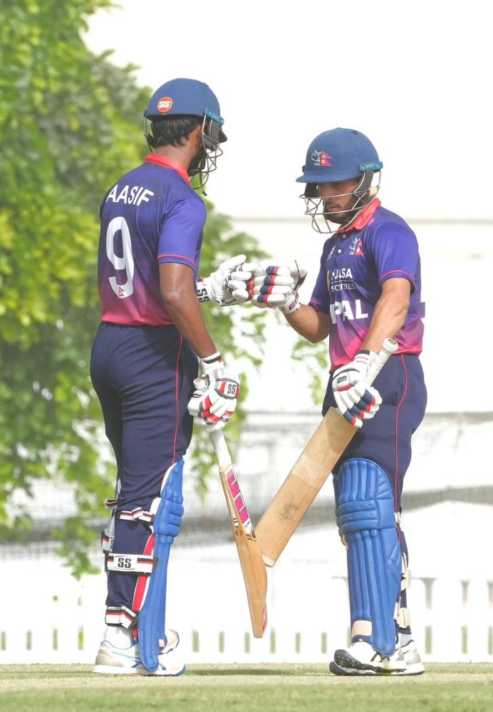 उनीबाहेक आसिफ शेखले ३४ रन बनाउँदा दिपेन्द्र सिंह ऐरीले ३७ रन बनाए। त्यस्तै आज टिममा पुनरागमन गरेका कुशल मल्ल ५१ बलमा १ चौका र ३ छक्काको सहयोगमा ४६ रन बनाएर आउट भए। त्यस्तै थप दोहोरो स्कोरका रुपमा सन्दीप लामिछाने १५ रनमा अविजित रहे। नेपालले अतिरिक्त रनका रुपमा १९ रन पाएको थियो।